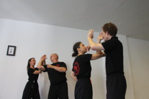 Der Schwerpunkt unserer Selbstverteidigung liegt nicht auf dem Pauken von technischen Formeln gegen standardisierte Angriffe, sondern im Erlernen der Entfaltung eines lebendigen Prozesses der selbst unter Stress flexibel und angemessen mit Angriffen und Bedrohungen in Einklang kommen kann.